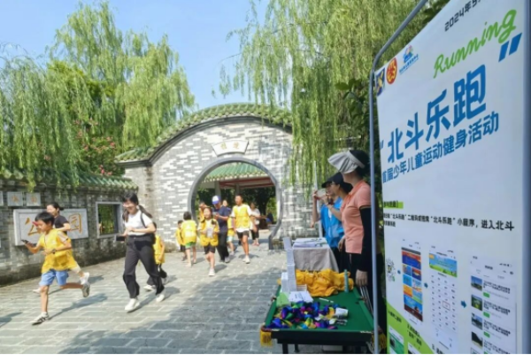 市妇联联合市儿童活动中心在南海区九江镇水南社区开展“北斗乐跑”少年儿童健身活动。