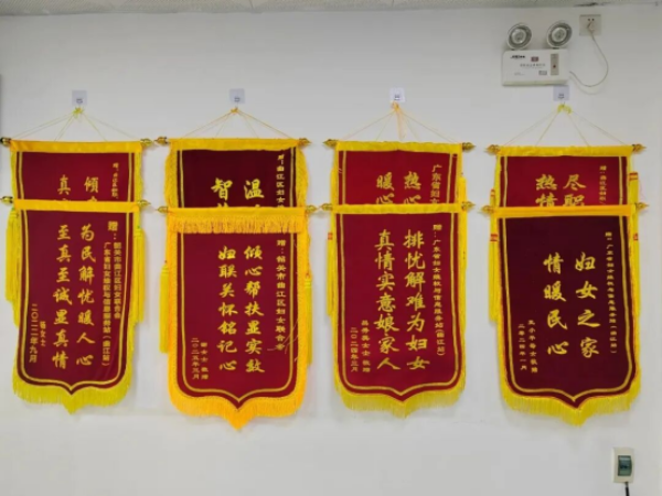 走进由韶关市曲江区妇联承办实施的广东省妇女维权与信息服务站(以下简称曲江站),最引人注目的是维权站墙上挂着的十几面锦旗,它们默默见证着群众对服务站的认可和感谢,其中一面锦旗来自何女士(化名)。