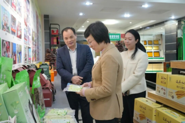 随后,调研组一行前往清远市巾帼助农创业基地,调研妇女创业创新工作情况,参观了基地的农产品展示展销区、巾帼手工专区、电商直播间、培训室、洽谈区等场地,了解基地“妇联支持、企业运作、巾帼赋能”的运营模式,并与清远女企业家们亲切交谈,鼓励她们持续发挥“半边天”作用,在创业路上勇毅前行。