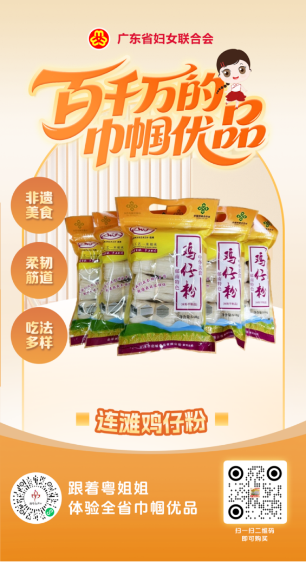 连滩鸡仔粉为云浮郁南千年非遗美食,以本地陈籼米和深山山泉水为原料,无添加且久煮不烂,柔韧筋道,可汤可炒,是家常百搭佳品。其产业带动连溪村打造“非遗+乡村振兴”样板,助力连溪村获评广东省“百千万工程”典型村。识别下图右侧二维码即可购买。