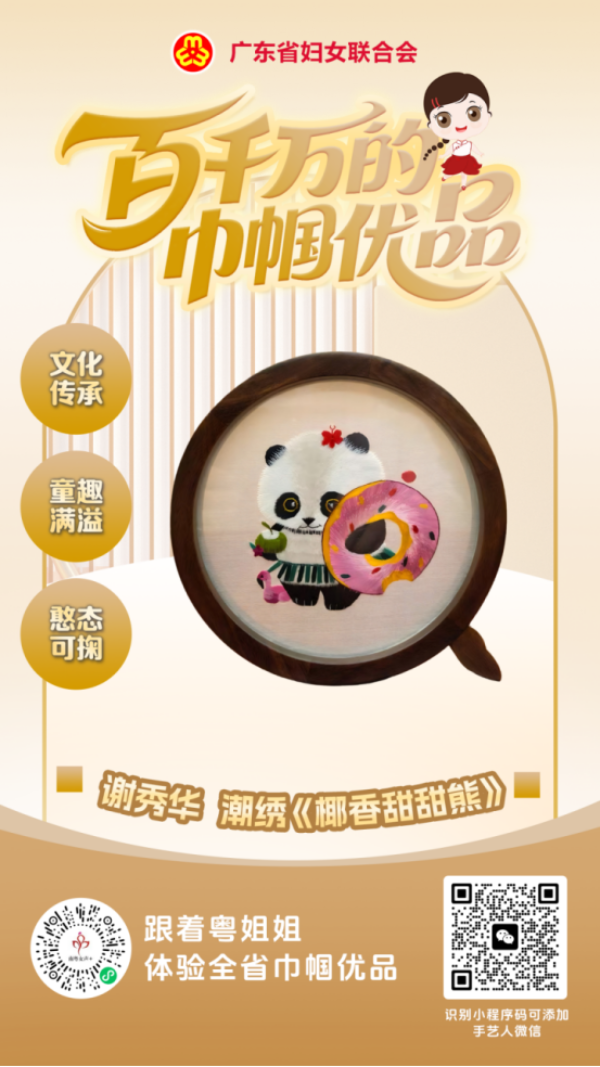 【潮州 巾帼优品:谢秀华潮绣作品《椰香甜甜熊》】